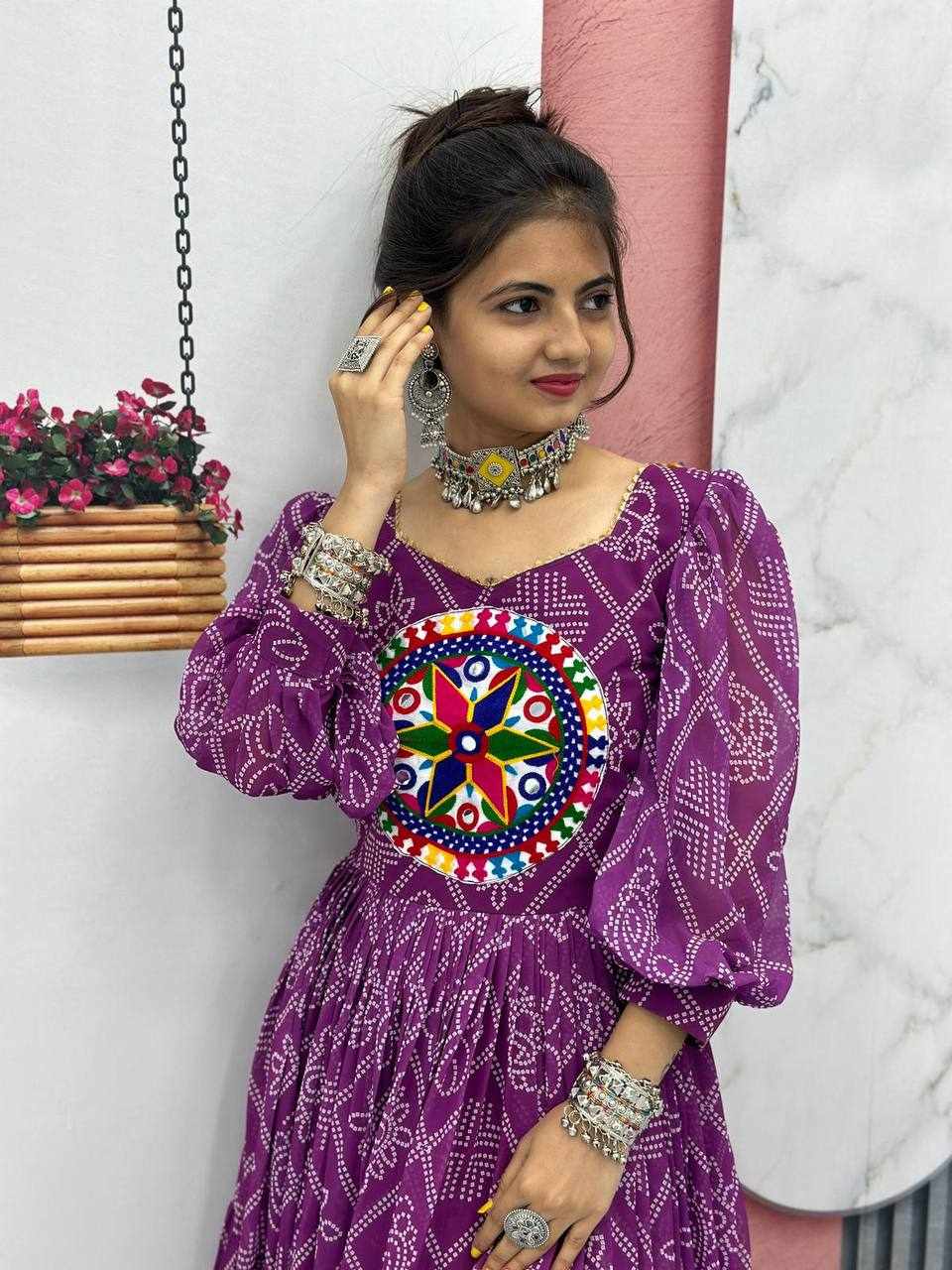 | Name : | PC N02 Purple Bandhani Print Gown |